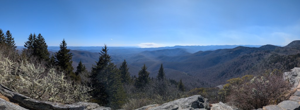 I liked the schedule I followed in Savannah, so after a slow morning on Friday, I convinced Grief and Loneliness that we should go on a hike in the afternoon. We’re in Asheville, so we might as well enjoy the views. We drove about an hour out of Asheville towards the Blue Ridge Parkway, which has a lot of scenic overlooks and hikes along it. I barely saw any cars on the road. It was just me driving up the mountain. At some point, I lost cell service and I realized that I had forgotten to download the maps of my route and the trails I planned to do. If something happened to me or my car, nobody would know. I kept going anyway. I had driven this far already and I wasn’t going home without seeing some beautiful views.